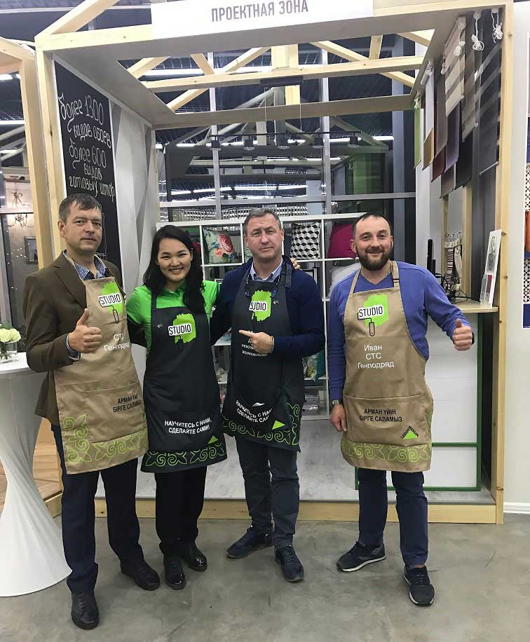 На фото (слева направо): Генеральный директор СТС Генподряд Вячеслав Запорожец, руководитель проекта POPUP LM Дарима Цоктоева, Генеральный директор LEROY MERLIN Казахстан Марк Лоше, менеджер по сторительству Танасейчук Иван