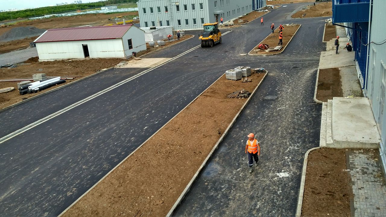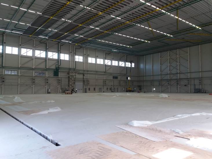 — строительство предангарной площадки (перрона), предназначенной для маневрирования воздушных судов (ВС) при вводе/выводе в ангары – 23276 м2;