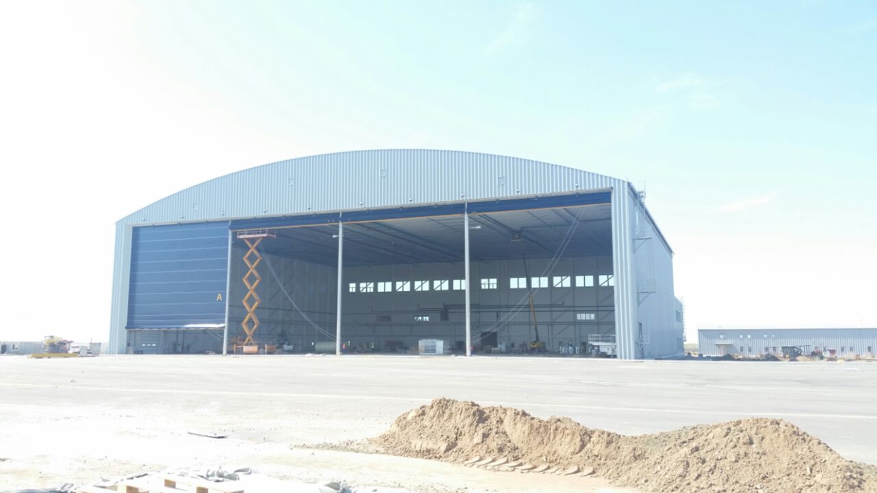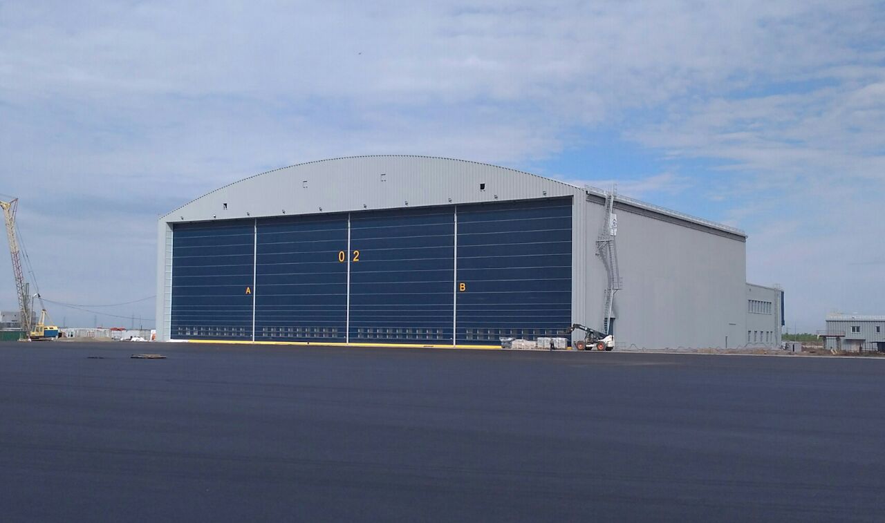 По предложению Заказчика все три здания быстро возводимых сборно - разборных конструкций выполняет Компания Канады «HONCOStreelBuildings». Компания Champion Door предоставляет подъемно-секционные вертикально-складывающие ангарные ворота. Все другие подъемные ворота, установленные для ангара и первого этажа пристраиваемого здания и подъемные ворота для гаража общего транспорта выполняет Компания Канады «HONCOStreelBuildings»