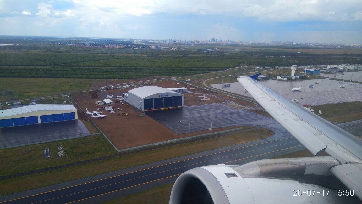 Проектируемый участок под строительство Авиационно-технического центра АО «Эйр Астана» в Международном аэропорту Астана расположен в западной части существующего аэропорта.